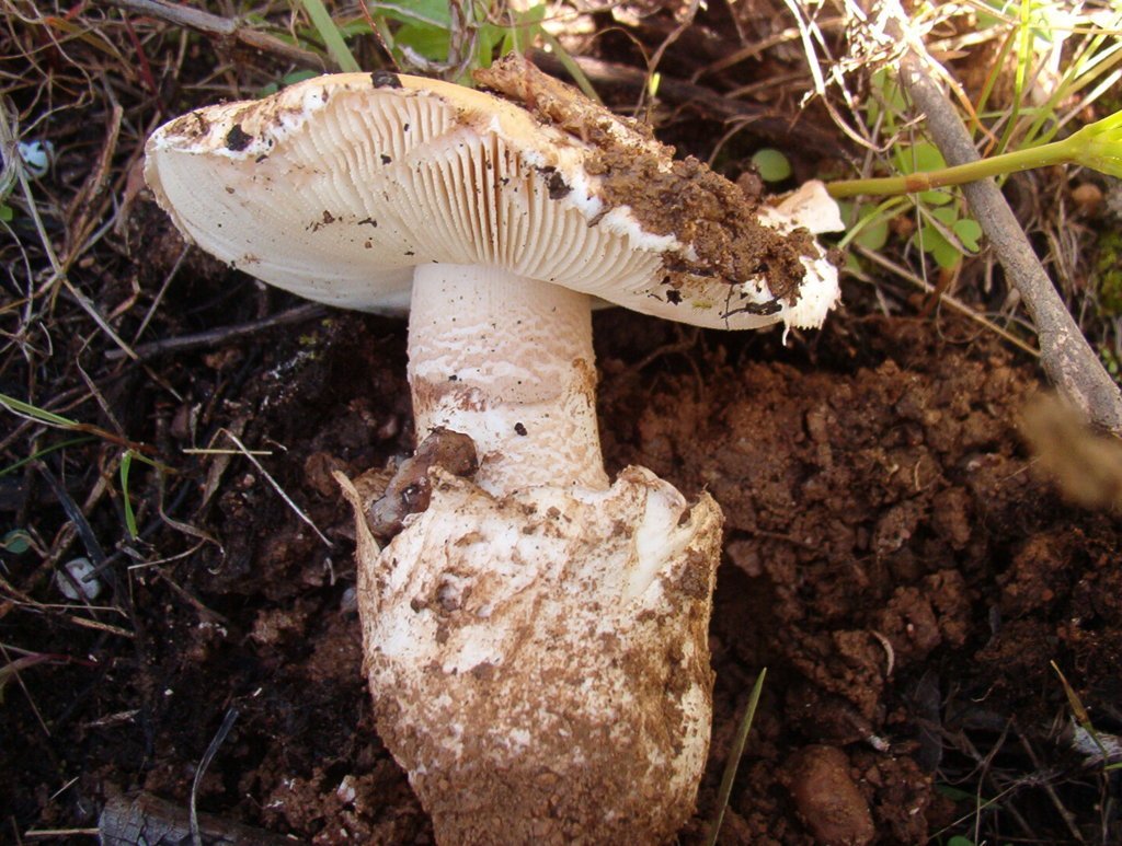 La carne es blanca, pero se vuelve rosada al oxidarse al contacto con el aire, una característica fundamental para distinguirla de otras Amanitas blancas, como la Amanita verna, ya que su carne es blanca inmutable.