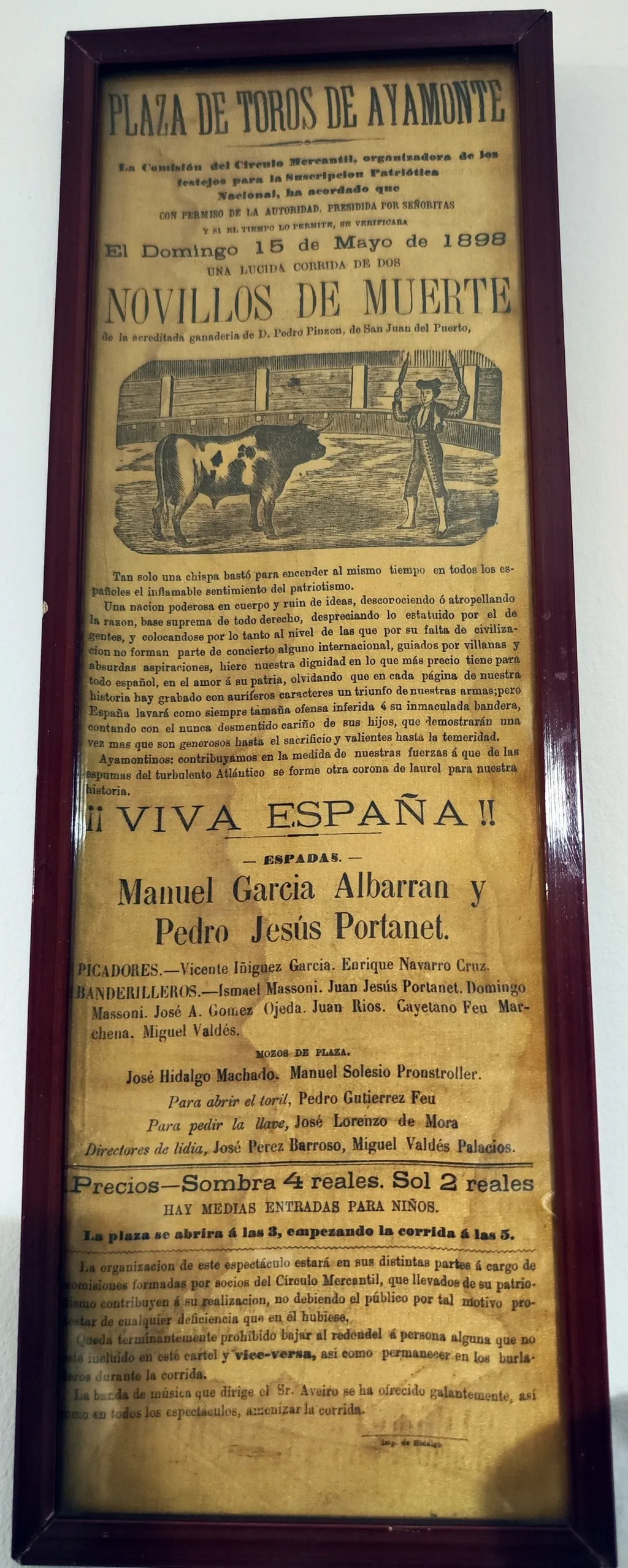 carteles espectáculos taurinos ayamonte mayo 1898 Propietaria: Una persona que vive en el centro de Ayamonte y que prefiere estar en el anonimato. Cartel de Semana Santa de 1943, conseguido en todoleccion.net