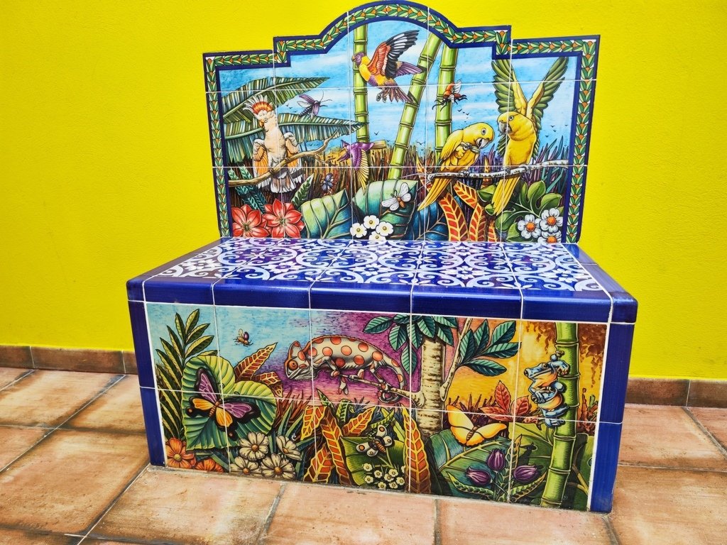 Queremos agradecer a los gerentes de Casa Verde Ayamonte el acceso al apartamento nº 29 para contemplar este precioso panel de azulejos, realizado por Emilio Heredia Burguillos.