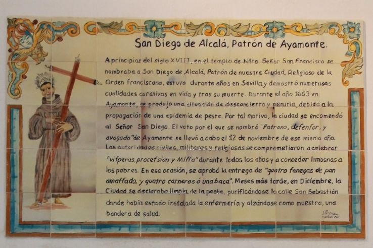 Panel de azulejos dedicado al patrón de Ayamonte, San Diego de Alcalá. Se encuentra en la entrada del Templo de San Francisco.