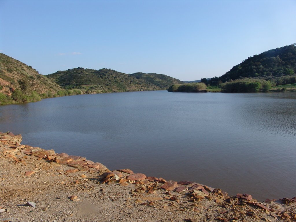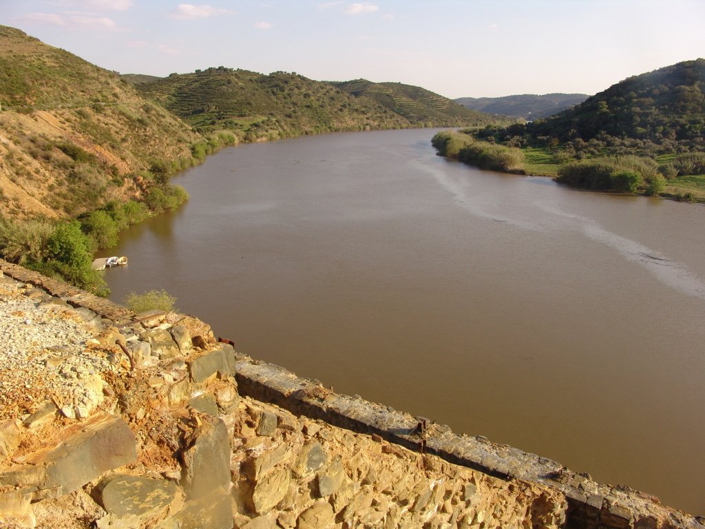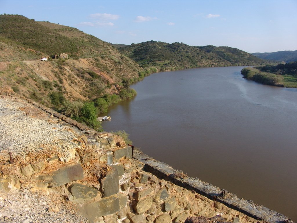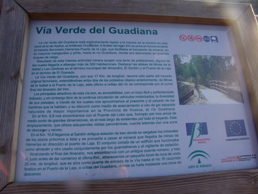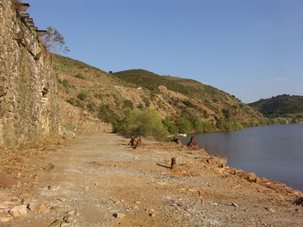 El ferrocarril minero tenía 32 km de largo y una estrecha vía de tan sólo 762 mm. Estuvo operativo entre 1888 y 1965. Los últimos 9 kilómetros de la línea debían vencer un desnivel de unos 200 m, con una pendiente máxima del 2,26% y curvas muy cerradas. Esta última sección de trazado muy sinuoso y que incluso incluía un pequeño túnel, fue la última en ser construido para poder reemplazar un cable aéreo que durante unos 4 km conectaba El Sardón (entonces final de la línea) con el Puerto de la Laja. Como en la línea vecina São Domingos-Pomarão, tras la clausura del trazado se desmantelaron todas las infraestructuras. La plataforma de la línea se ha convertido en un reclamo turístico porque permite el paso en bicicleta por lo que se ha acondicionado como parte de la Vía Verde del Guadiana.
