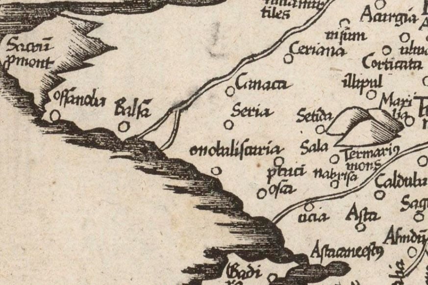 REPRODUCCIÓN DEL ATLAS DE PTOLOMEO. 1522. INSTITUTO GEOGRÁFICO GENERAL. AMPLIACIÓN DE LA ZONA DE AYAMONTE