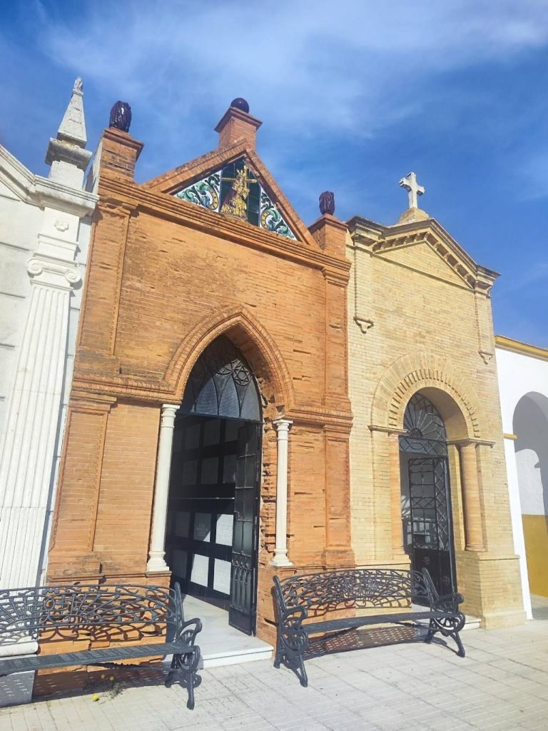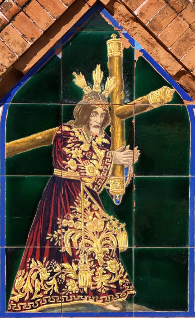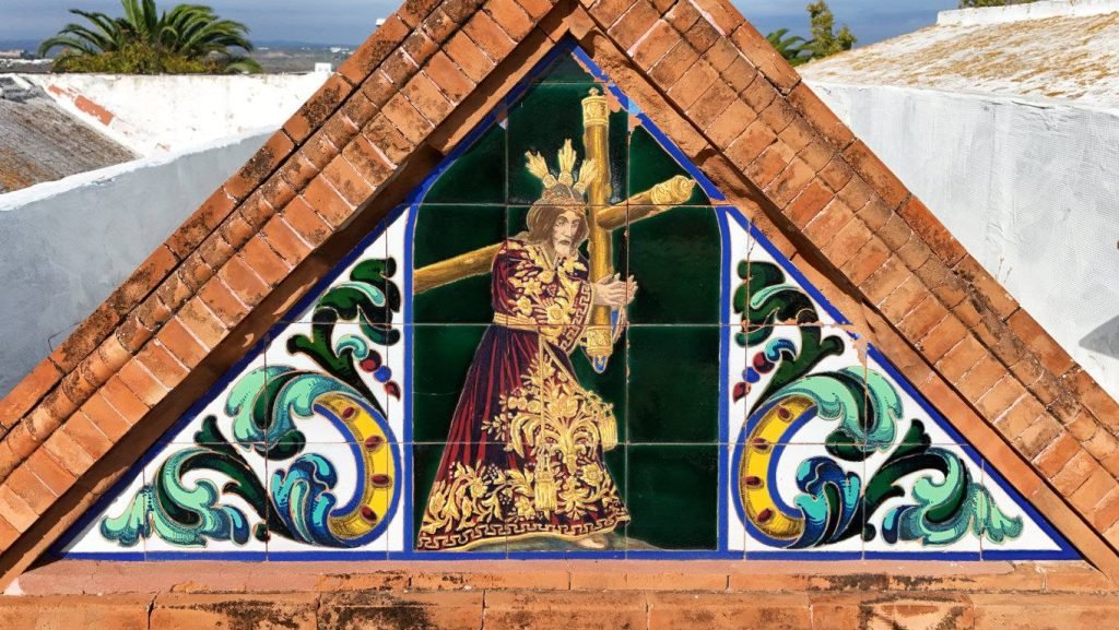 Este retablo cerámico se encuentra en la fachada exterior del Panteón Familiar de la familia Feu en el Cementerio Municipal.