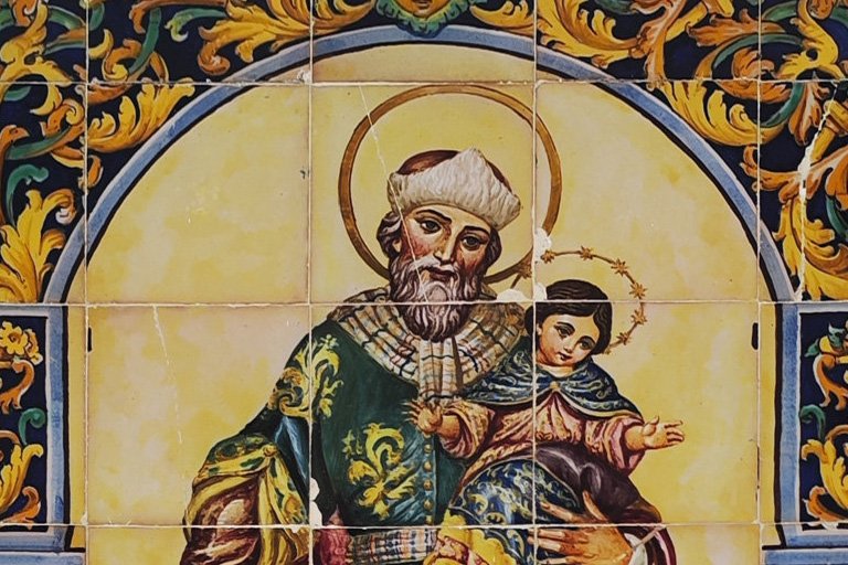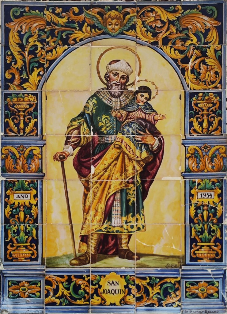 retablo cerámico de san joaquín y la virgen en residencia de ancianos