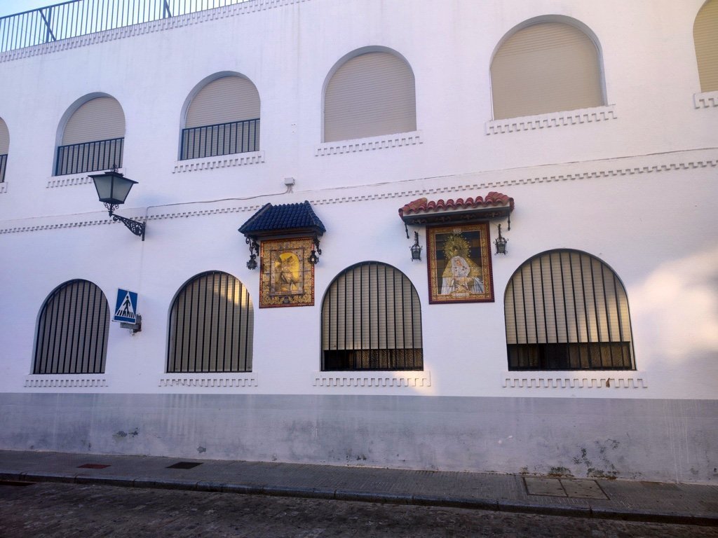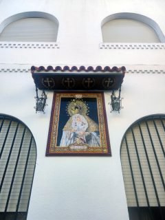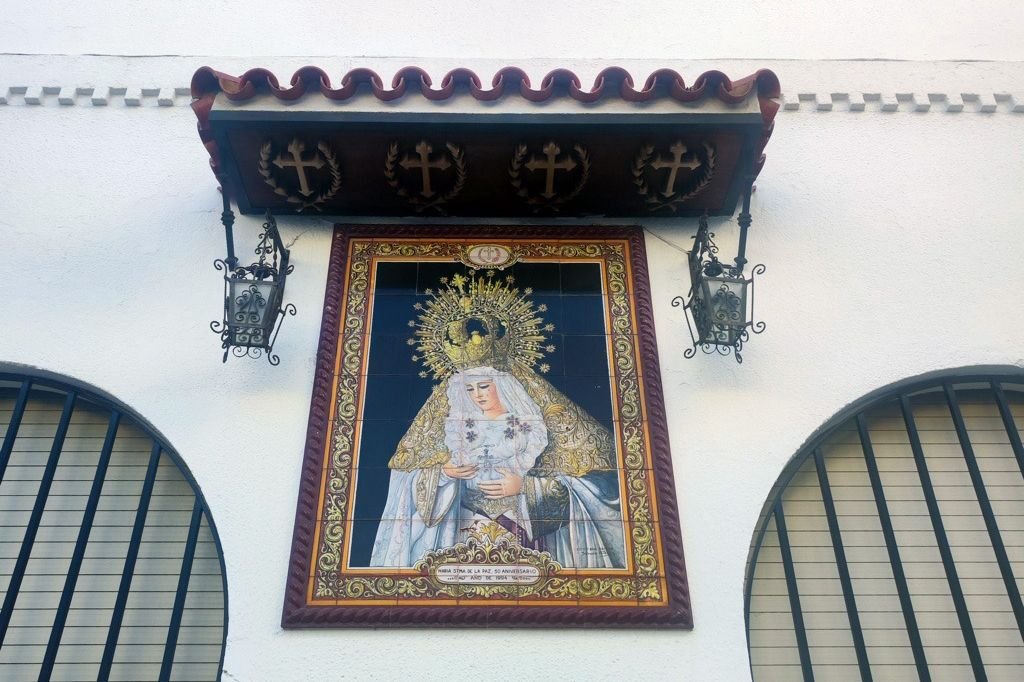 Este azulejo está colocado en la fachada del convento, uno de los lugares de paso de la Hermandad.