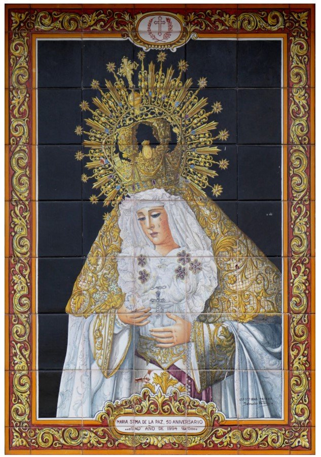 retablo cerámico virgen de la paz. fachada del convento de las hermanas de la cruz